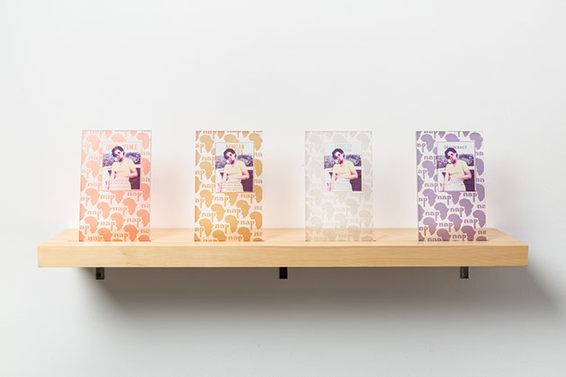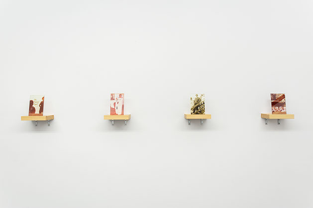 Digital prints on acrylic, each with pine shelf, dimensions 14 x 23cm each.
