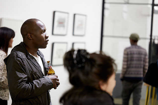 Opening night. Installation view from left clockwise 136 Denials in ‘76, 98 Denials in ‘77, Deny, Denial, Denied and Nie Deny Nie, 2016. Serigraphs on paper, dimensions 50 x 35 cm (unframed). Editions of 5.